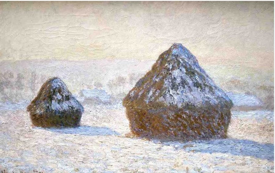 Like my painting teacher Claude, I didn’t stop there. Next I corrupted Monet’s Grainstacks: Snow Effect…