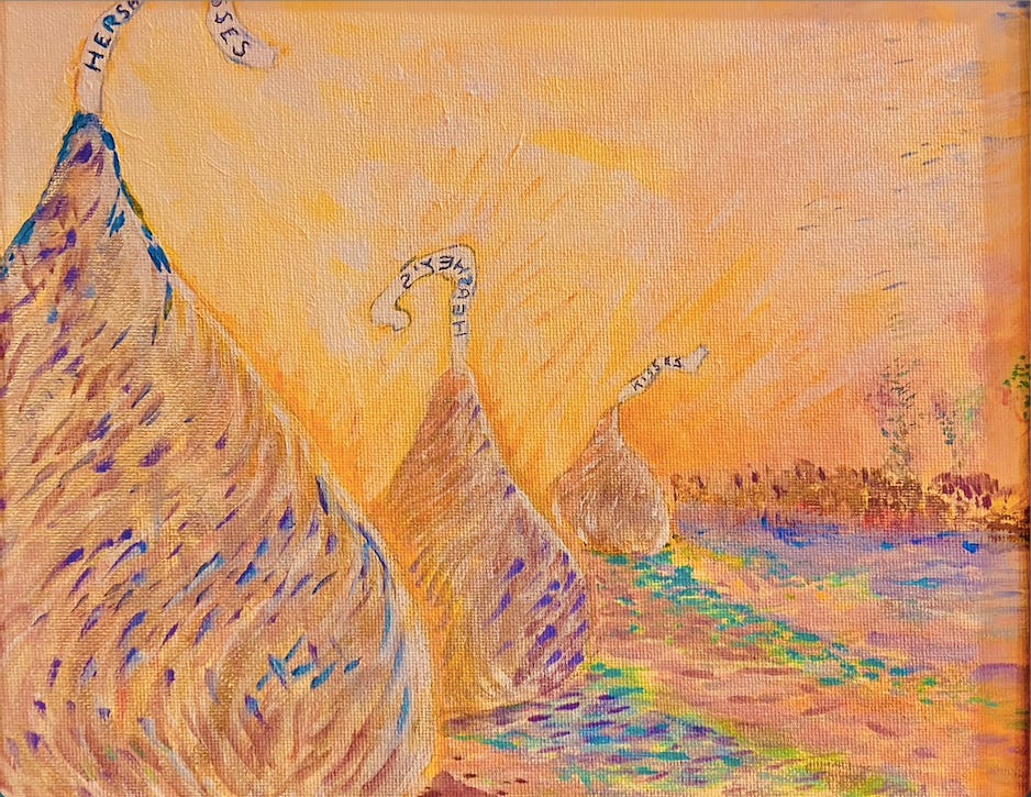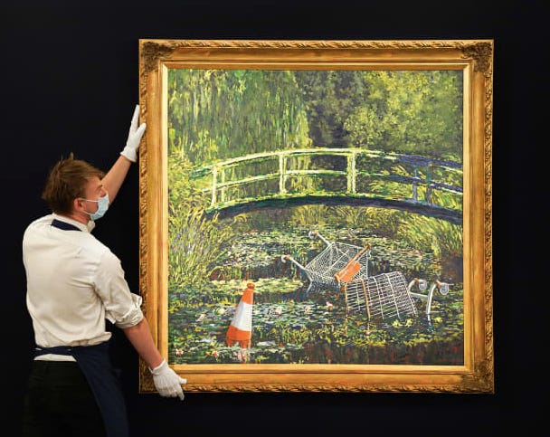 Soon after I hung my series on the wall of our kitchen—where else?—I saw this CNN headline: “Banksy's 'Show me the Monet' painting sells for nearly $10 million.”